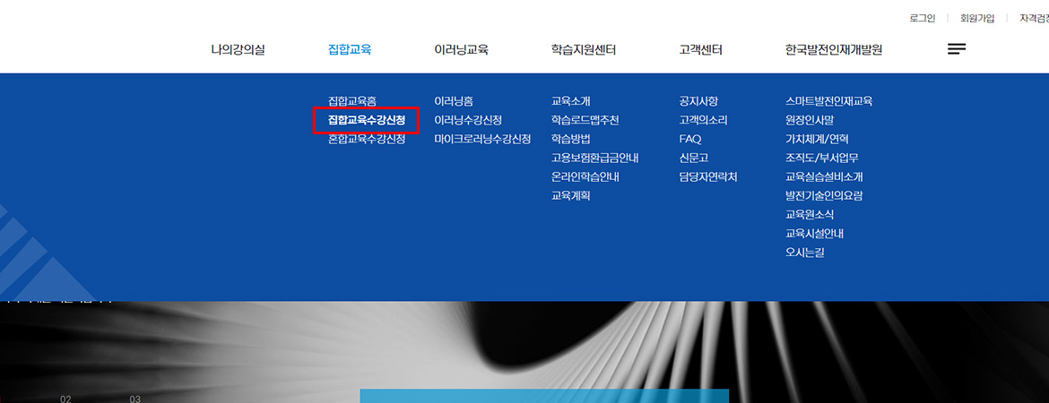 에서 신청하신 집합교육을 확인하실 수 있으며, 해당 교육과정 클릭시